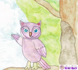 „So so“, sagt die Eule und flattert mit ihren lila Flügel, „dann lass uns mal schauen was ich euch geben kann.“